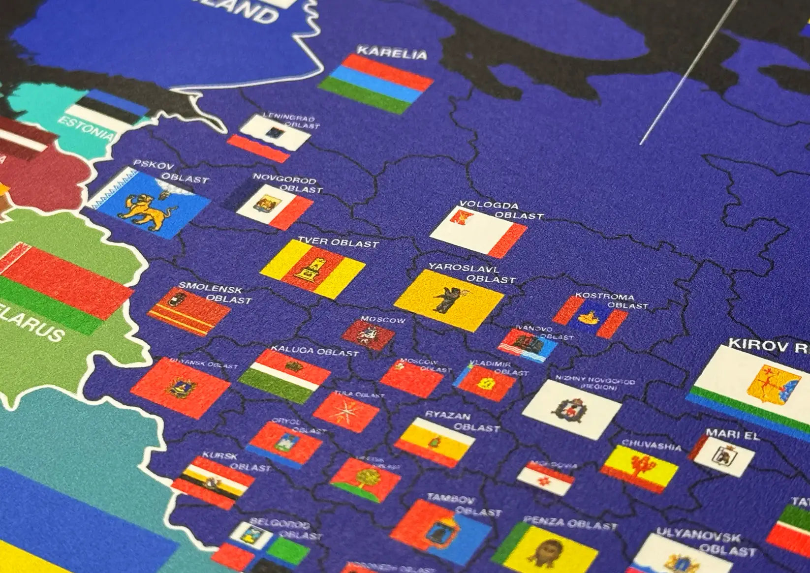 Please note: Some of the regional flags and text may be illegible due to scaling. Even though this print is quite large, there is a lot of detail at a very small scale, and it will not match the digital zoomed in version at Flagthousand.com